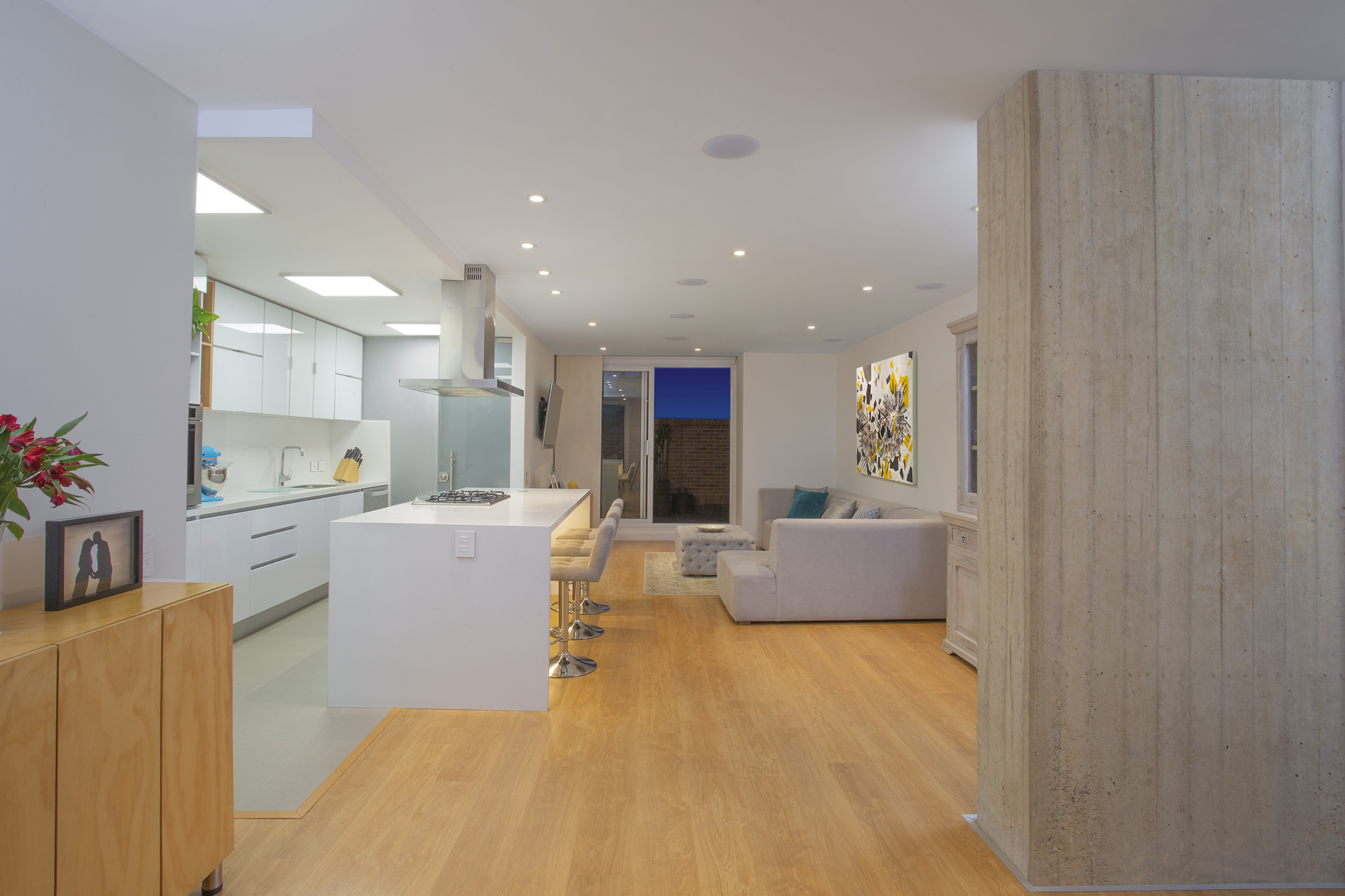 Este apartamento fue transformado para aprovechar al máximo cada espacio y adaptarse a una vida más abierta y contemporánea. La cocina se integró a la sala, convirtiéndose en el corazón del hogar, con una carpintería completamente renovada, nuevos electrodomésticos y una iluminación pensada para acompañar tanto lo funcional como lo social. La columna estructural se dejó a la vista como un elemento protagónico, aportando carácter y un atractivo visual que refuerza la identidad del espacio.