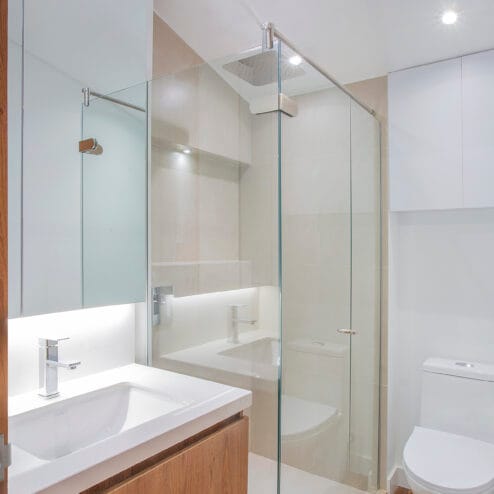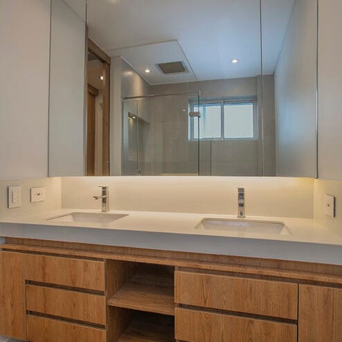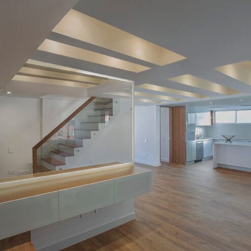 En el comedor, se incorporaron nichos de iluminación que resaltan la doble altura de la sala, creando un ambiente acogedor y sofisticado. La habitación de huéspedes fue ajustada en tamaño, sin perder confort ni funcionalidad. En el segundo nivel, el baño principal fue ampliado y completamente renovado, al igual que el estudio, con acabados modernos que elevan la calidad de vida diaria. Cada detalle de esta renovación busca ofrecer un equilibrio entre diseño, confort y funcionalidad, pensado para disfrutar cada rincón del hogar.