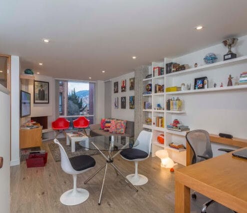 La intervención también incluyó la renovación de todas las instalaciones hidráulicas y eléctricas, garantizando un hogar seguro y eficiente. Se actualizaron los baños y la carpintería de todo el apartamento, con nuevos mesones, closets, puertas, griferías y accesorios que reflejan un estilo contemporáneo y funcional.