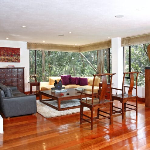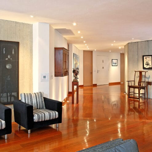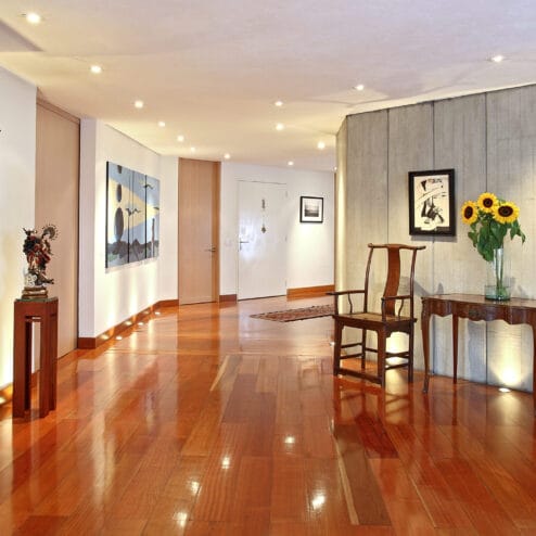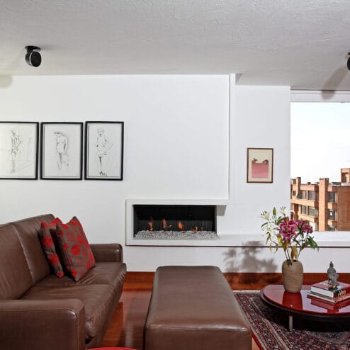 Este apartamento fue completamente renovado para optimizar su distribución y modernizar sus espacios. Se demolieron muros de mampostería para abrir la zona social, integrar una biblioteca, y ampliar la cocina, la zona de servicio y el baño principal.