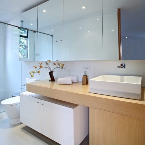 Se reemplazaron todos los acabados, incluyendo enchapes y alfombra, por un piso laminado nuevo en todo el apartamento. Además, se actualizaron las instalaciones hidráulicas y eléctricas, y se renovaron la cocina y los baños con nuevos muebles, mesones, griferías, divisiones y porcelanas sanitarias. También se cambió la carpintería de madera en closets y puertas, y se incorporó nueva iluminación con spots y bombillos LED
