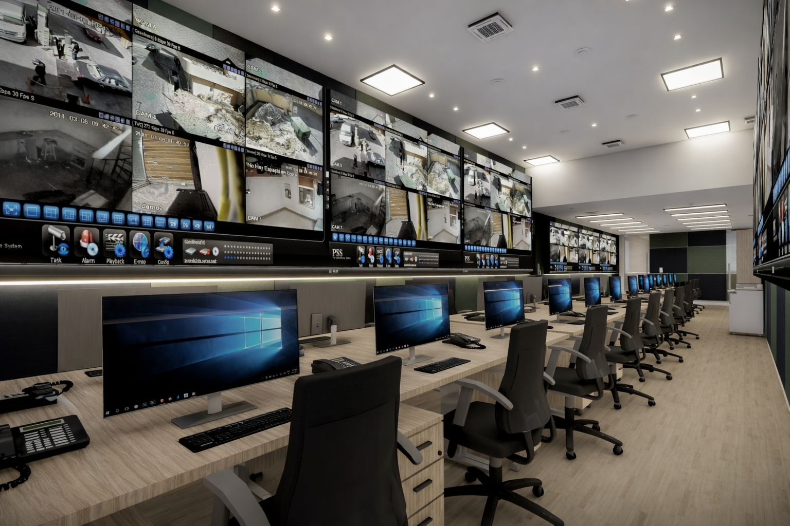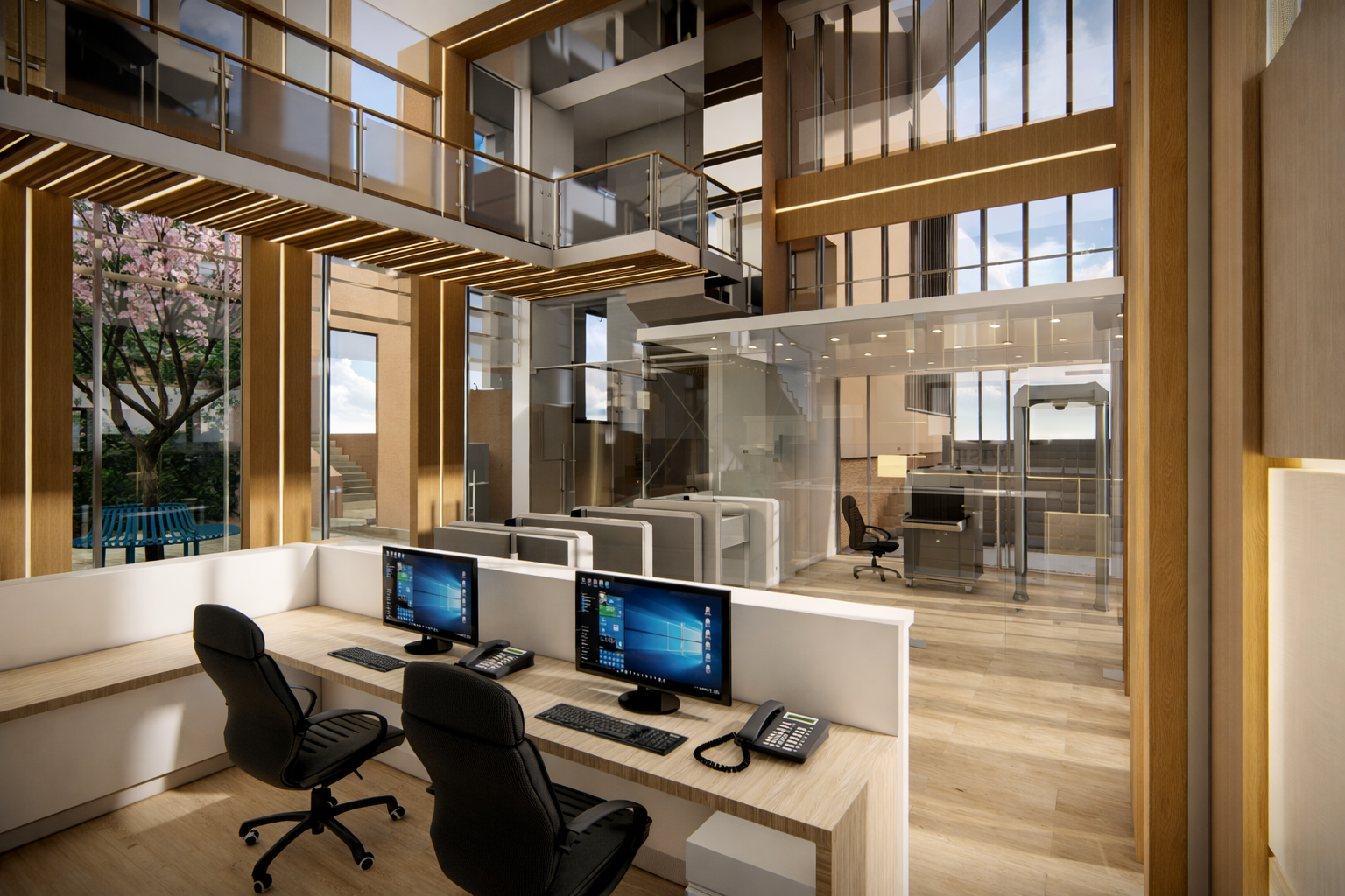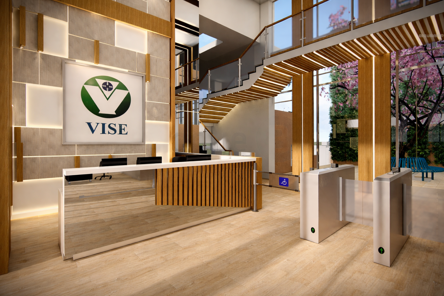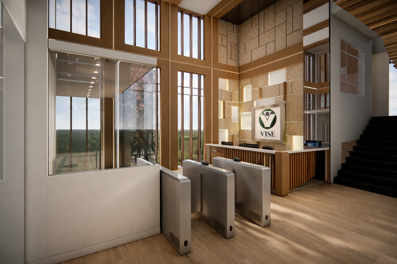 En este proyecto, la arquitectura se convierte en una herramienta para comunicar confianza, tecnología y eficiencia. Las oficinas fueron rediseñadas para integrar áreas estratégicas como la recepción, sala de monitoreo y de crisis, creando un entorno profesional donde cada espacio refleja el nivel de especialización de la empresa. Cada espacio fue pensado para integrar tecnología, seguridad y diseño, permitiendo que clientes y colaboradores perciban el alcance real de la empresa. Los elementos de control de acceso, junto con materiales cálidos y una iluminación bien estudiada, generan un equilibrio entre lo técnico y lo humano.