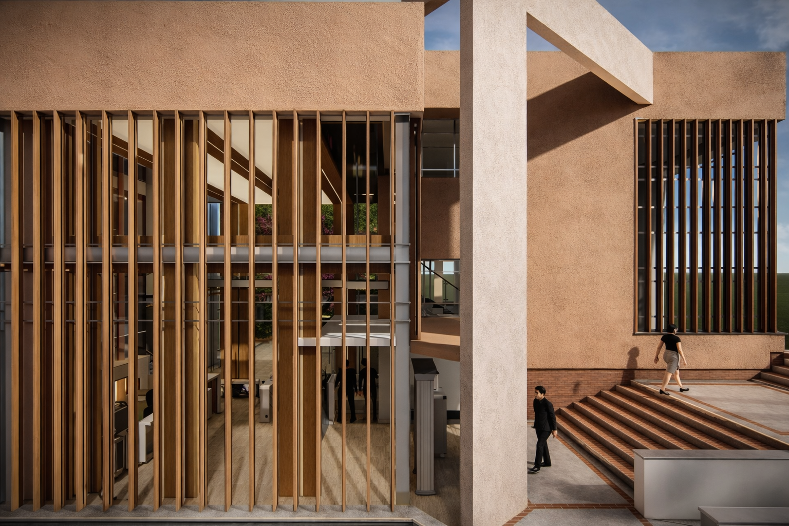 El proyecto prioriza el bienestar y la accesibilidad, incorporando espacios para personas con movilidad reducida y una propuesta integral de mejoramiento acústico. El uso de piso SPC unifica las áreas de transición y permanencia, creando continuidad y durabilidad. La propuesta incorpora soluciones inteligentes como almacenamiento optimizado, lockers, tratamiento acústico y espacios accesibles que mejoran la funcionalidad diaria.