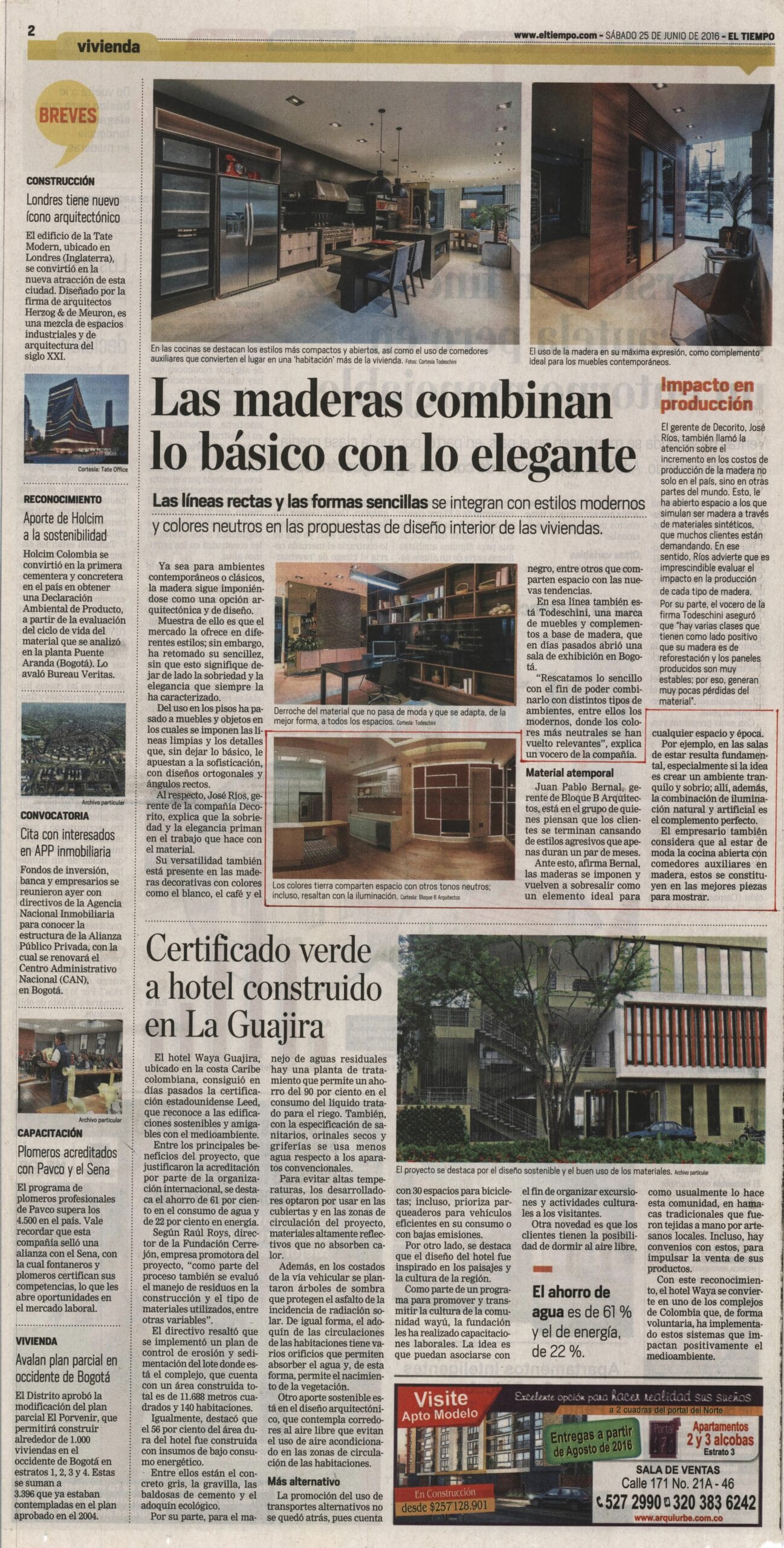 Entrevista en la que damos información de tendencias y comportamientos en arquitectura, dinámicas del mercado y propuestas de diseño.